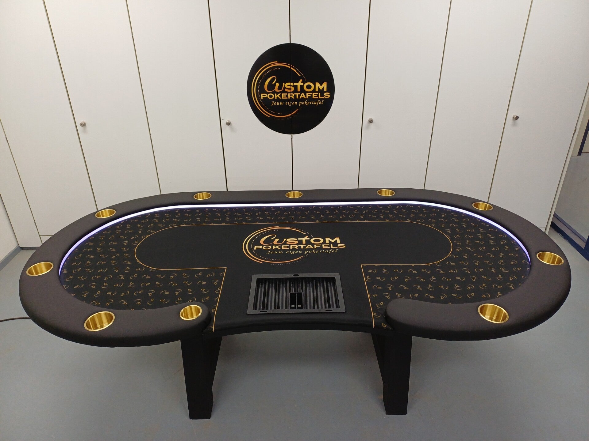 Deze pokertafel met ons eigen logo is altijd in de aanbieding.